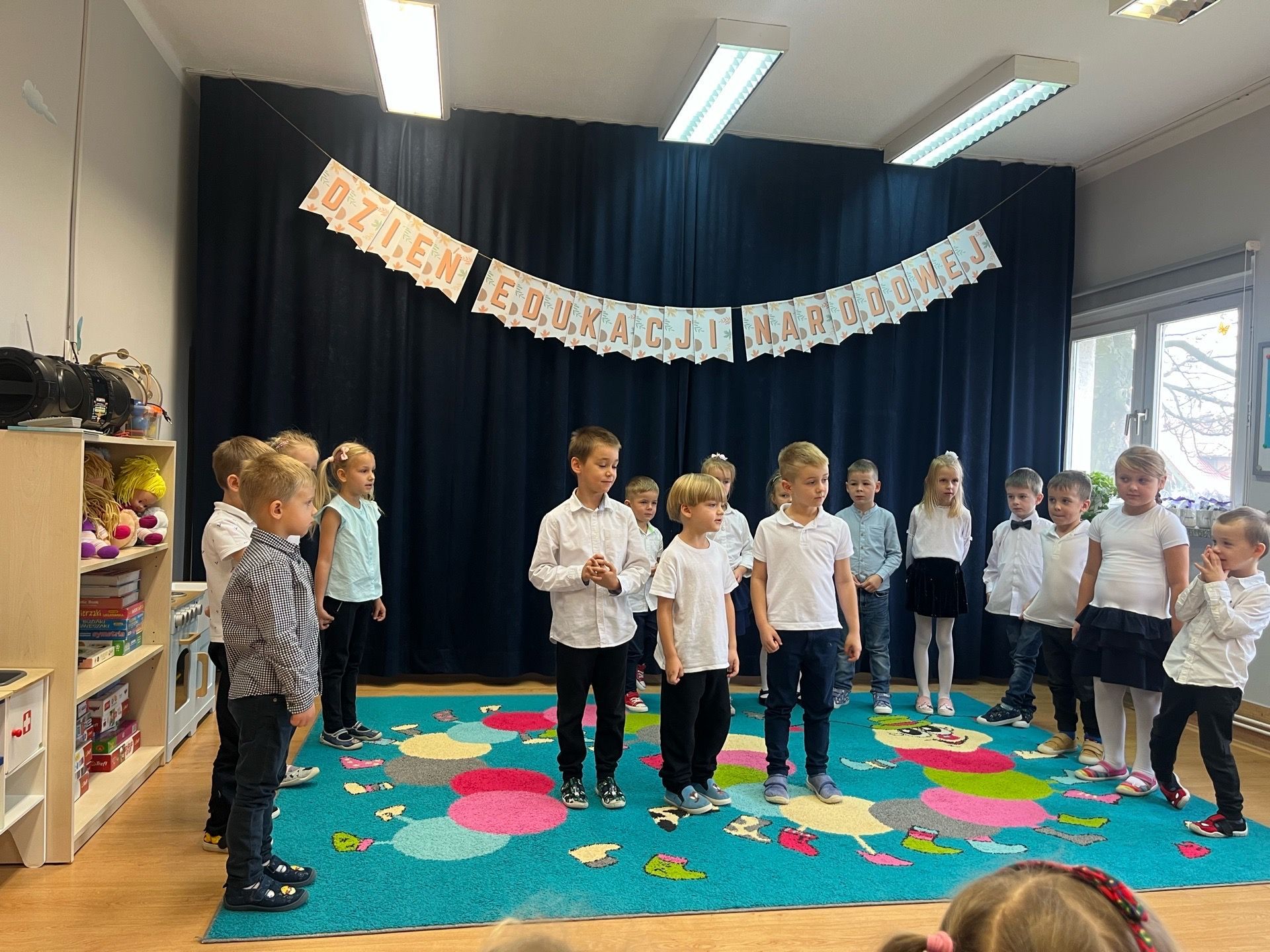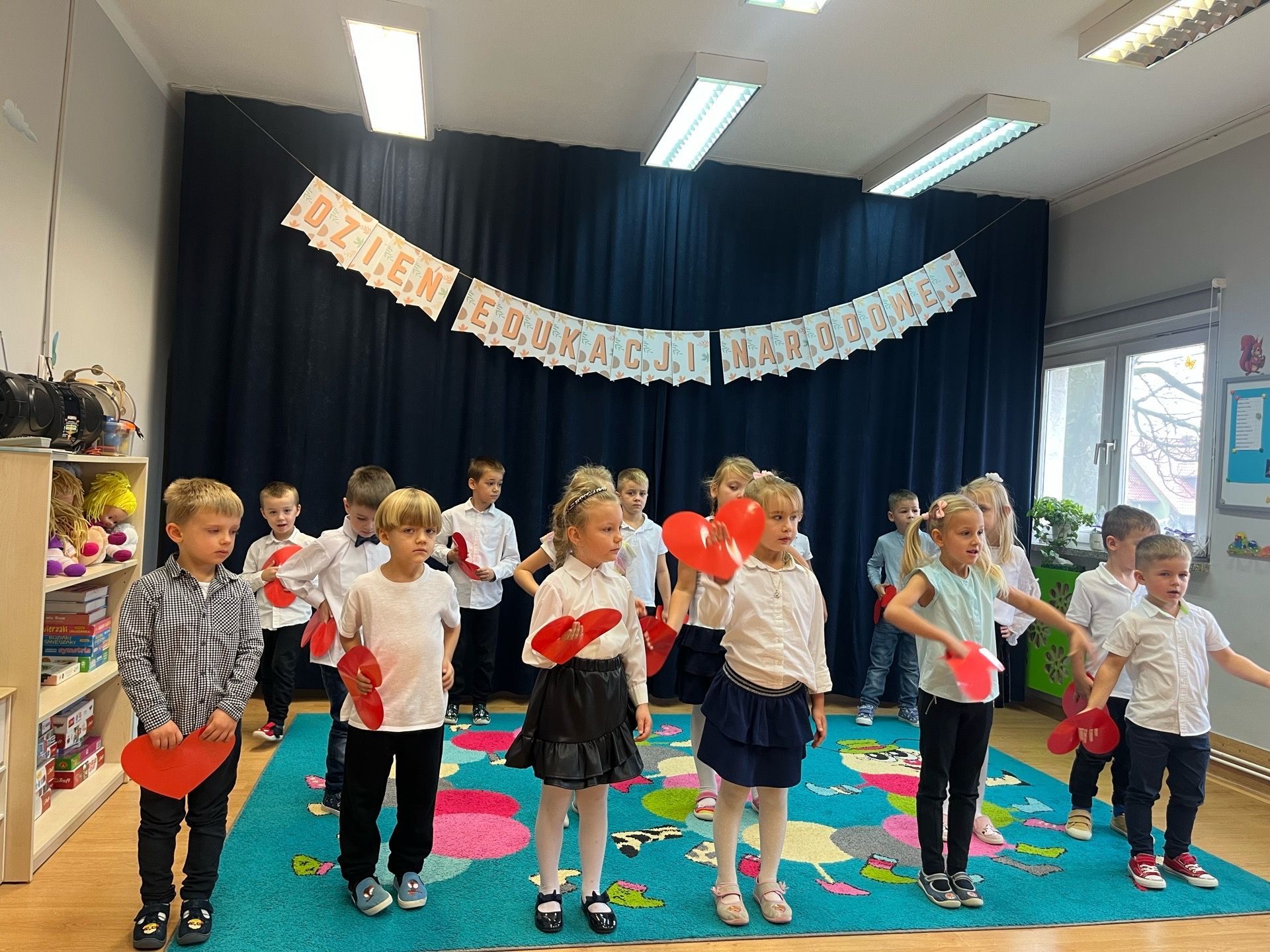W dniu 14 października w naszym przedszkolu świętowaliśmy Dzień Edukacji Narodowej -- wyjątkowe święto wszystkich nauczycieli, pracowników oświaty oraz osób, które każdego dnia wkładają serce w wychowanie i edukację najmłodszych.
