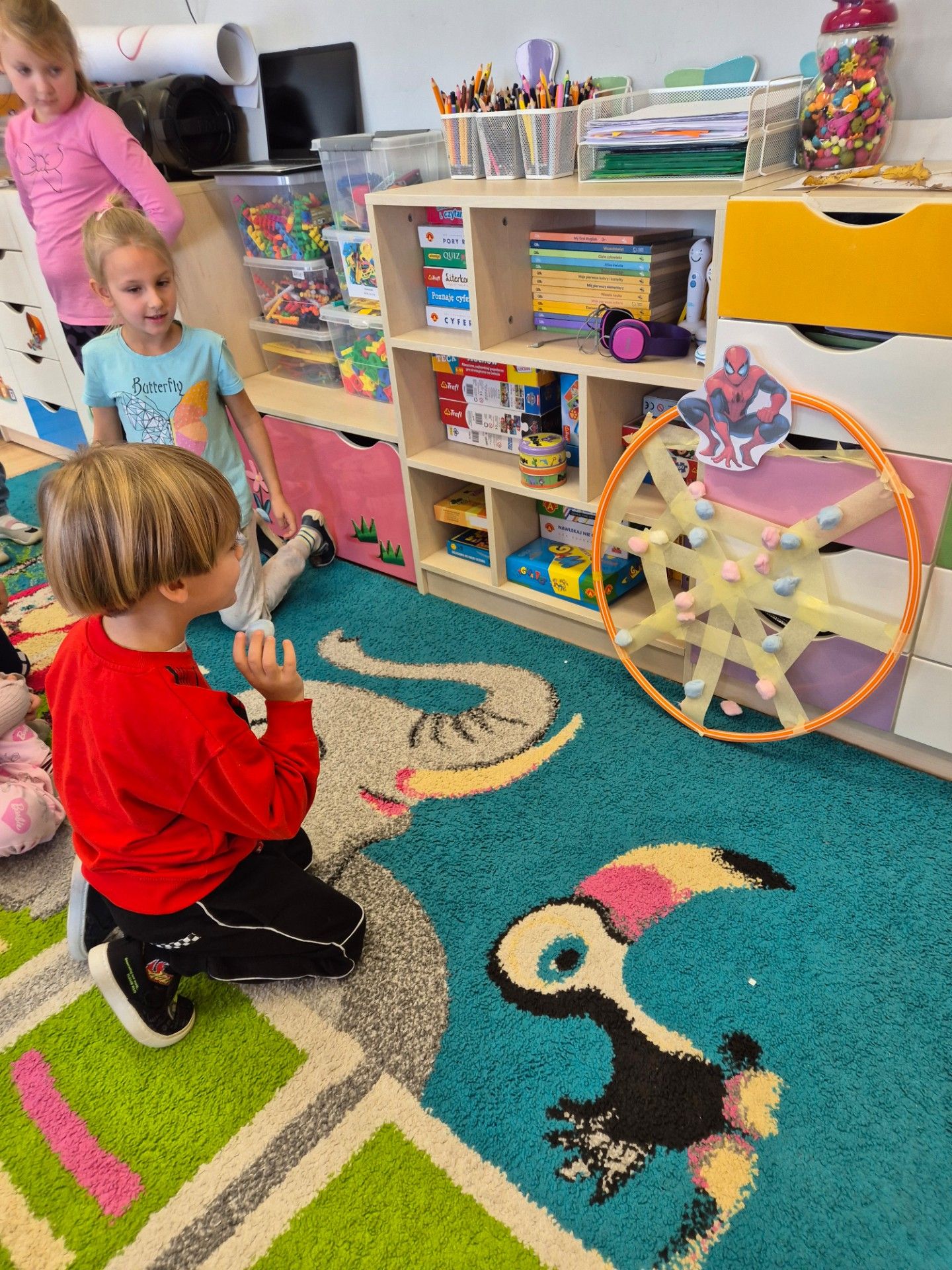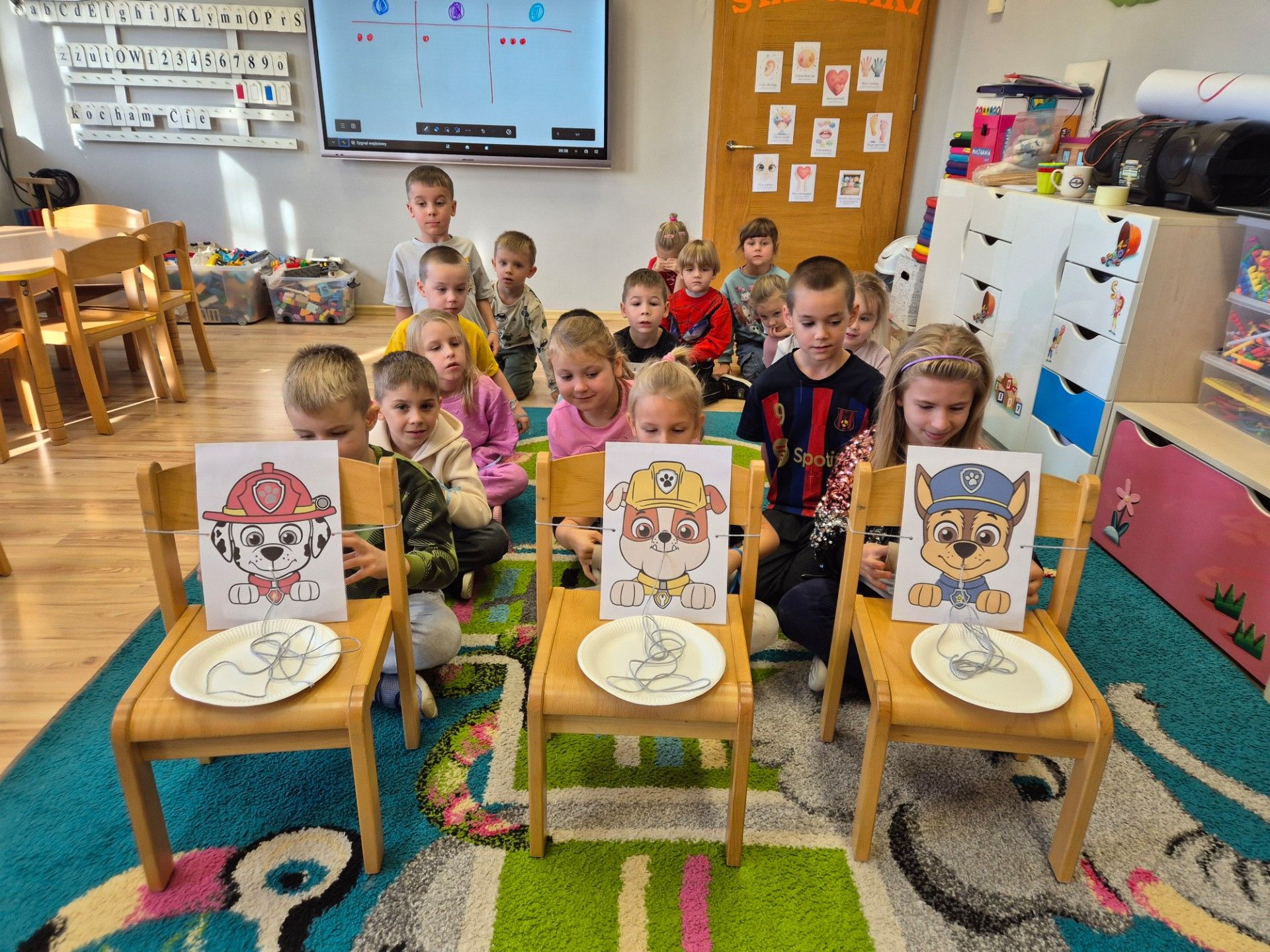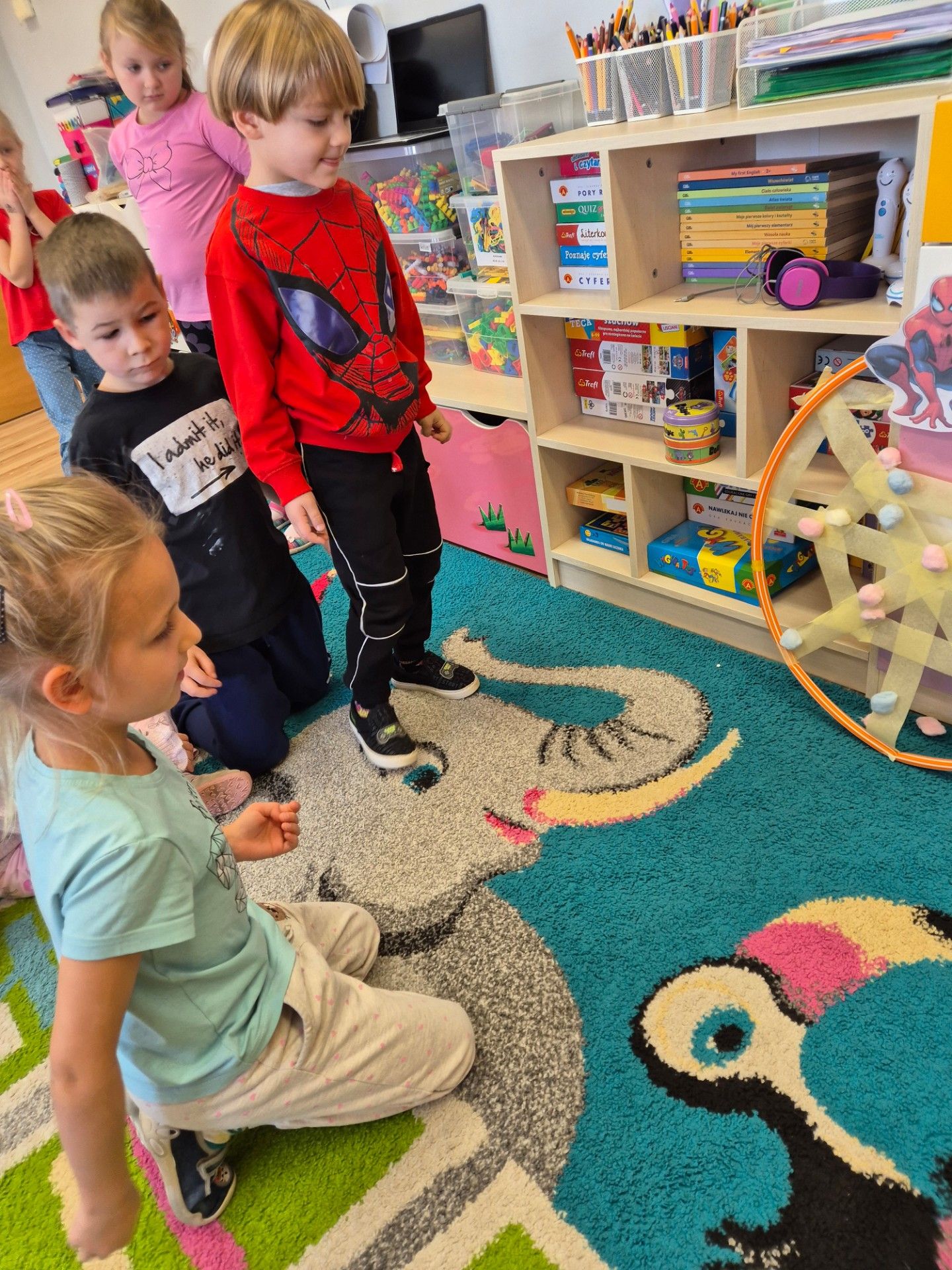 W grupie starszaków obchodziliśmy dziś Dzień Postaci z Bajek – pełen radości, kreatywności i wspólnej zabawy. Dzieci przeniosły się do bajkowego świata, w którym uwalniały Sticha z lodu, ucząc się przy tym współpracy i skutecznej komunikacji w grupie. Z zapałem układały puzzle tematyczne, a podczas zabawy w karmienie piesków z Psiego Patrolu poprzez zwijanie sznurka doskonaliły zasady zdrowej rywalizacji. Dużo emocji dostarczyło także rzucanie kulkami do sieci Spider-Mana, które rozwijało zręczność i koncentrację. Na zakończenie starszaki wykazały się pomysłowością, tworząc wieże zamkowe według własnych projektów. Dzień był pełen śmiechu, bajkowych wyzwań i wspaniałej współpracy. Wrzucam kilka zdjęć z dzisiejszego dnia.