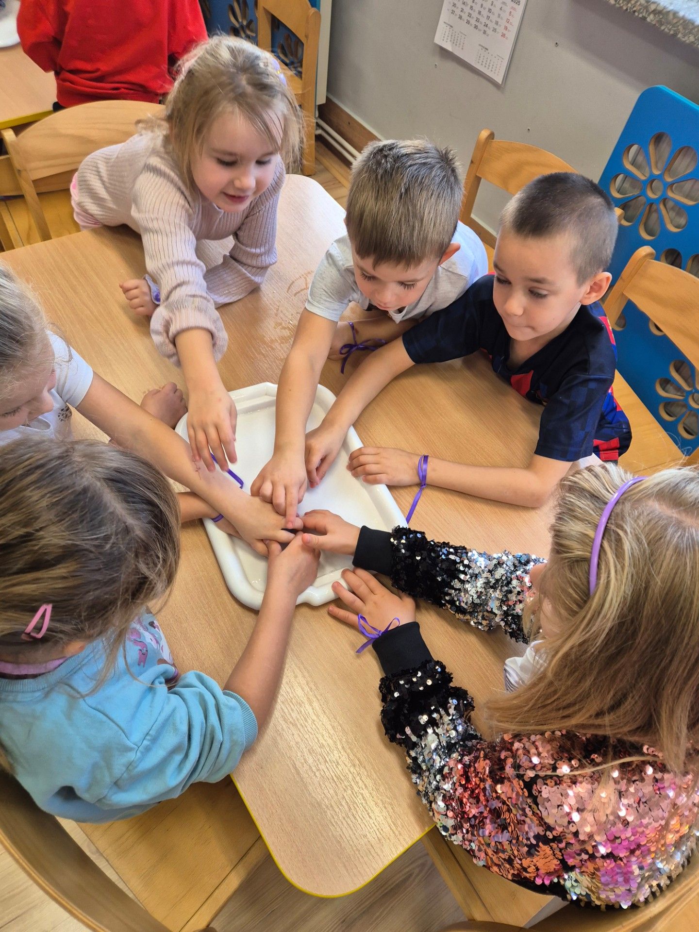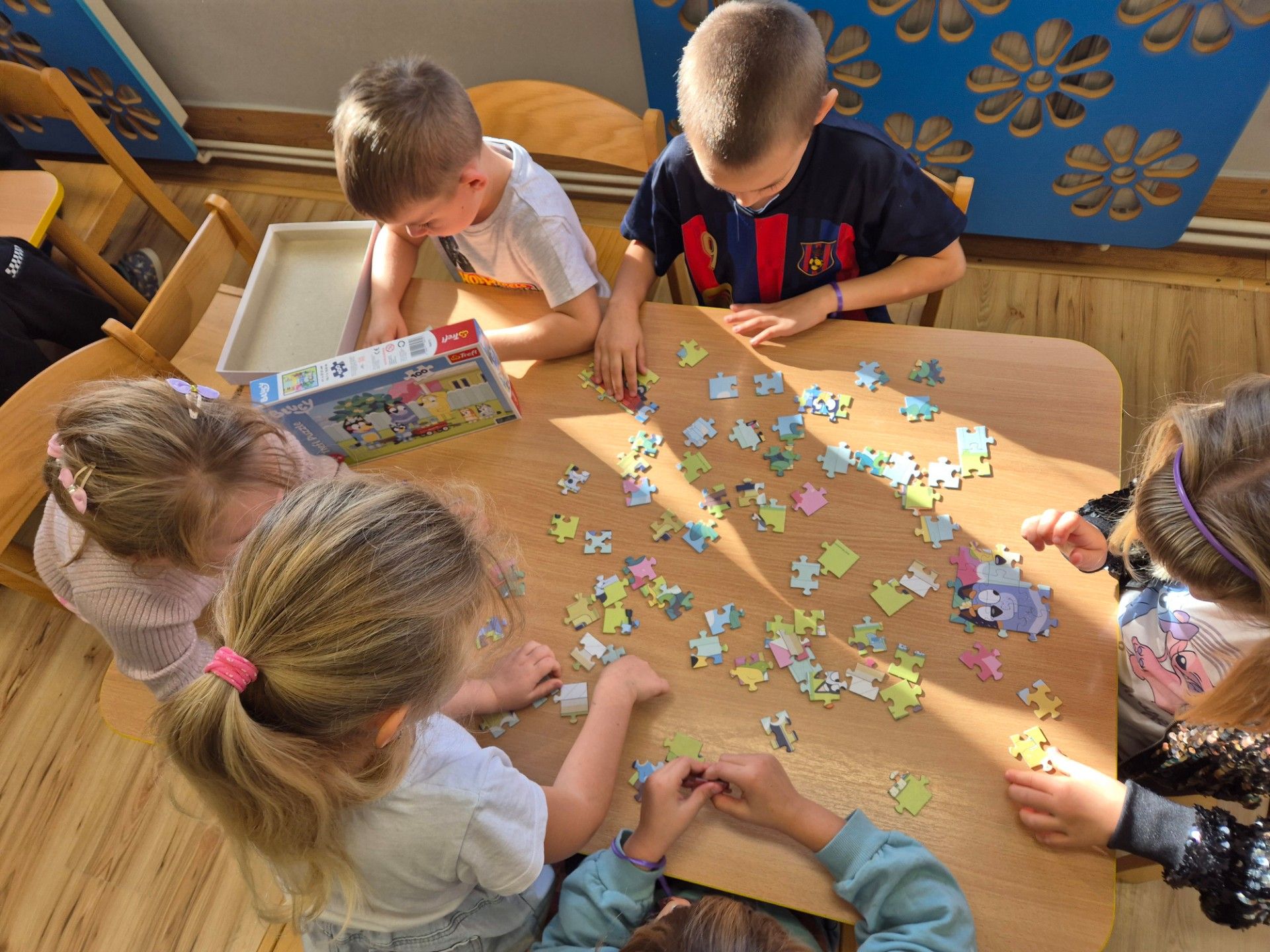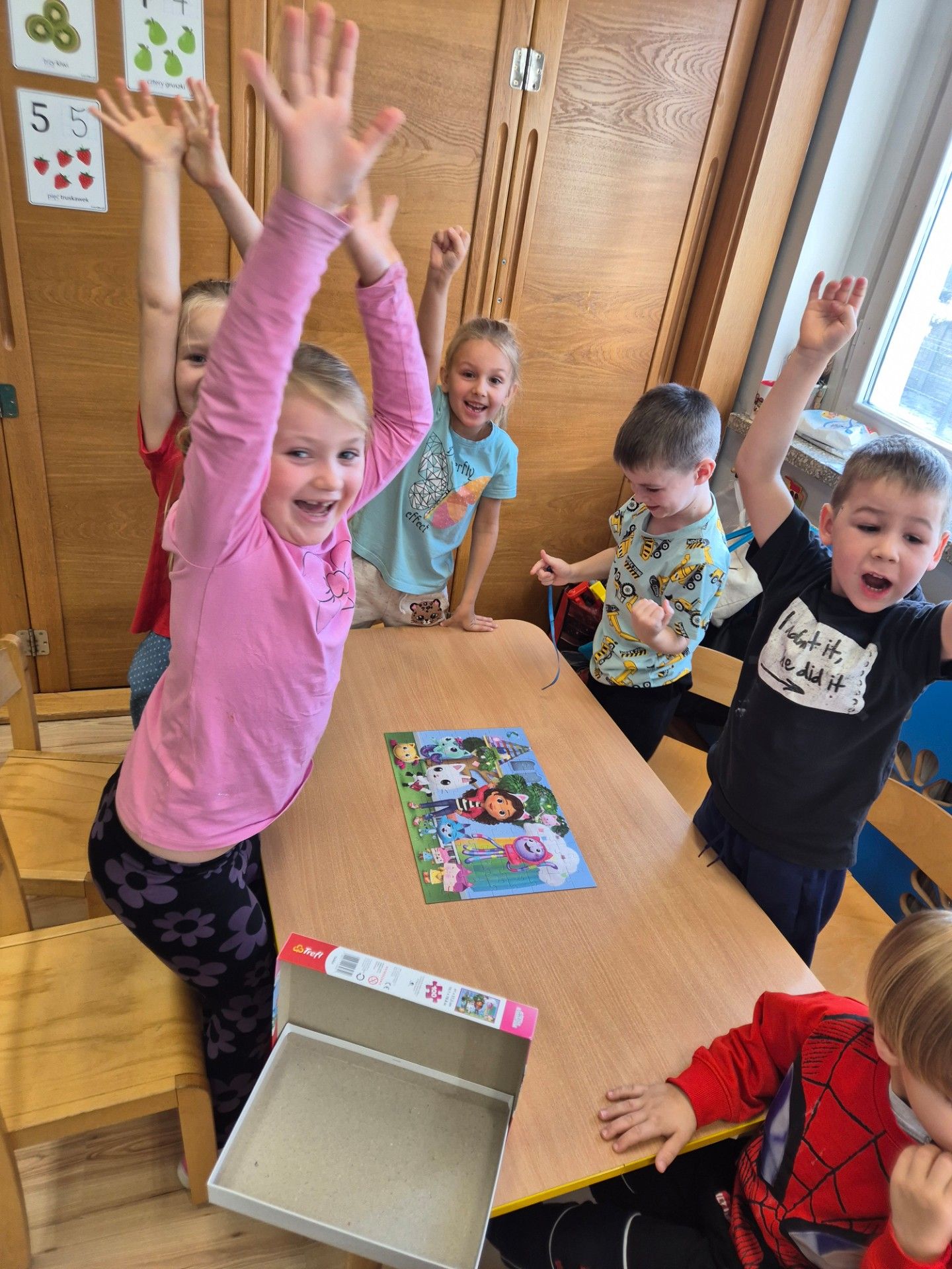 W grupie starszaków obchodziliśmy dziś Dzień Postaci z Bajek – pełen radości, kreatywności i wspólnej zabawy. Dzieci przeniosły się do bajkowego świata, w którym uwalniały Sticha z lodu, ucząc się przy tym współpracy i skutecznej komunikacji w grupie. Z zapałem układały puzzle tematyczne, a podczas zabawy w karmienie piesków z Psiego Patrolu poprzez zwijanie sznurka doskonaliły zasady zdrowej rywalizacji. Dużo emocji dostarczyło także rzucanie kulkami do sieci Spider-Mana, które rozwijało zręczność i koncentrację. Na zakończenie starszaki wykazały się pomysłowością, tworząc wieże zamkowe według własnych projektów. Dzień był pełen śmiechu, bajkowych wyzwań i wspaniałej współpracy. Wrzucam kilka zdjęć z dzisiejszego dnia.