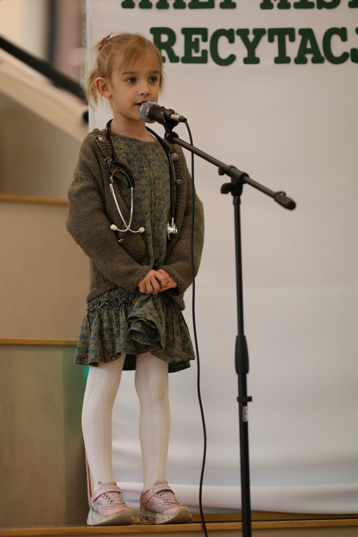 Dzieci wykazały się nie tylko piękną dykcją i pamięcią, ale przede wszystkim niezwykłą odwagą, pokonując tremę i stając na scenie przed publicznością. Ich występy były pełne emocji, radości i dziecięcej wrażliwości, co stworzyło wyjątkową, pełną ciepła atmosferę.