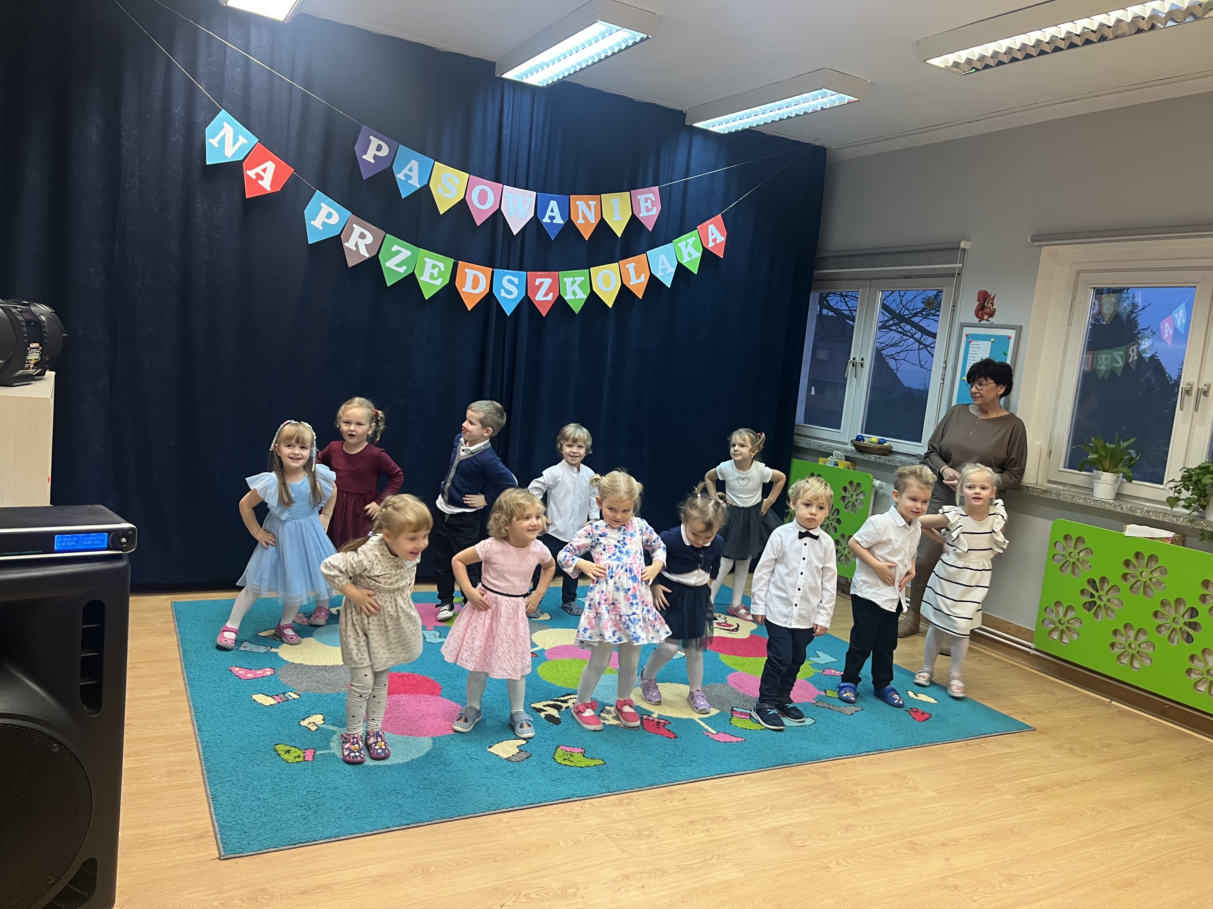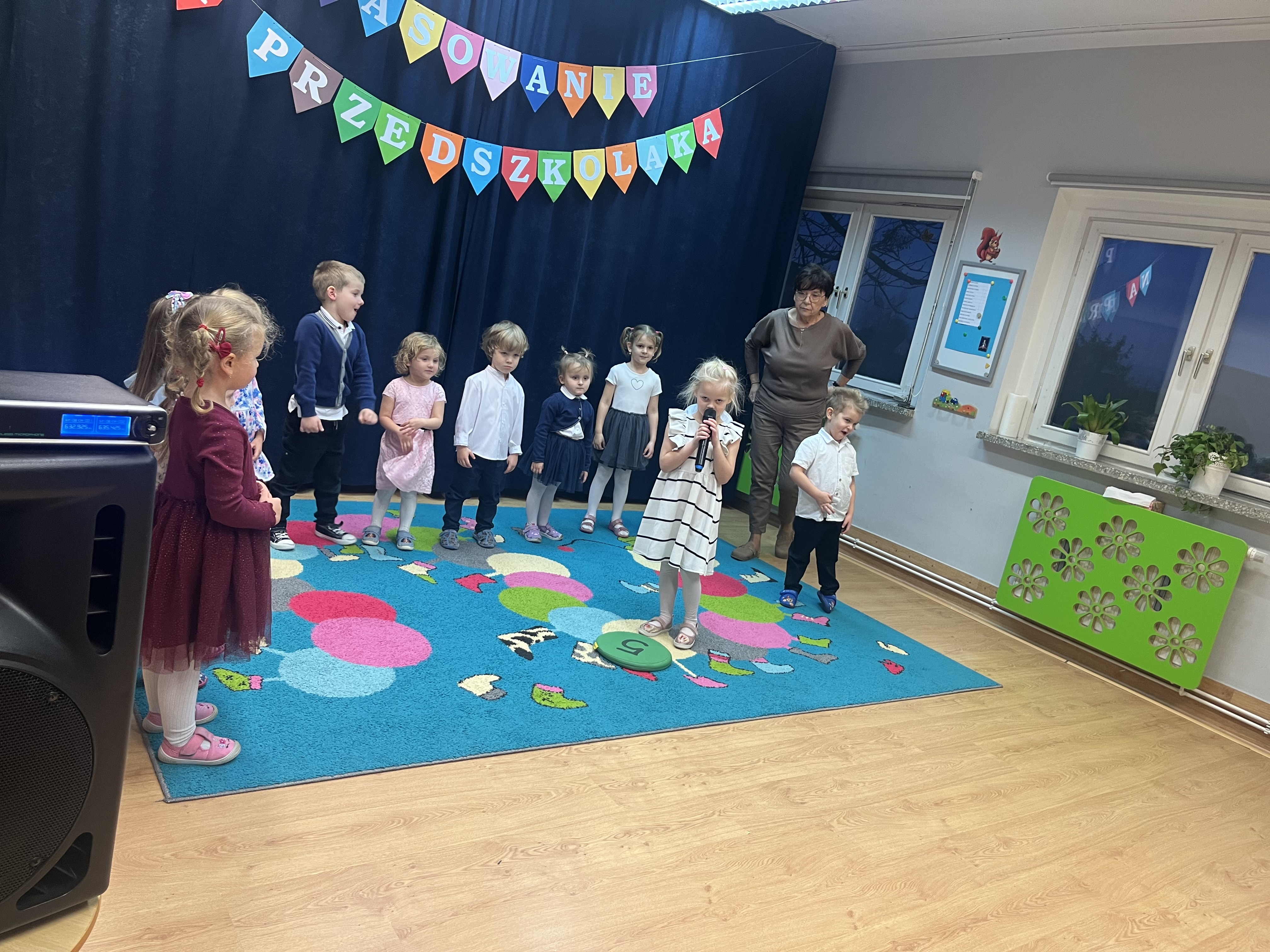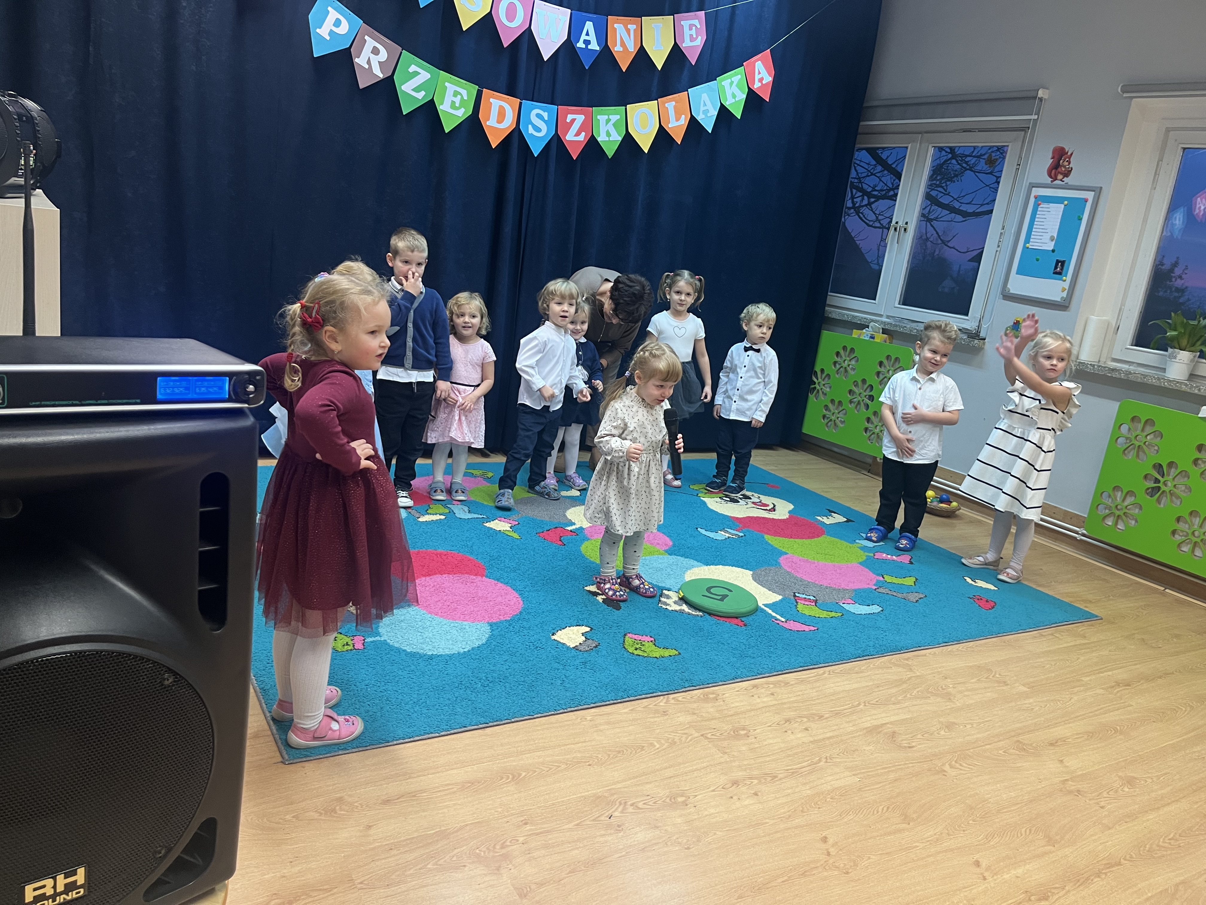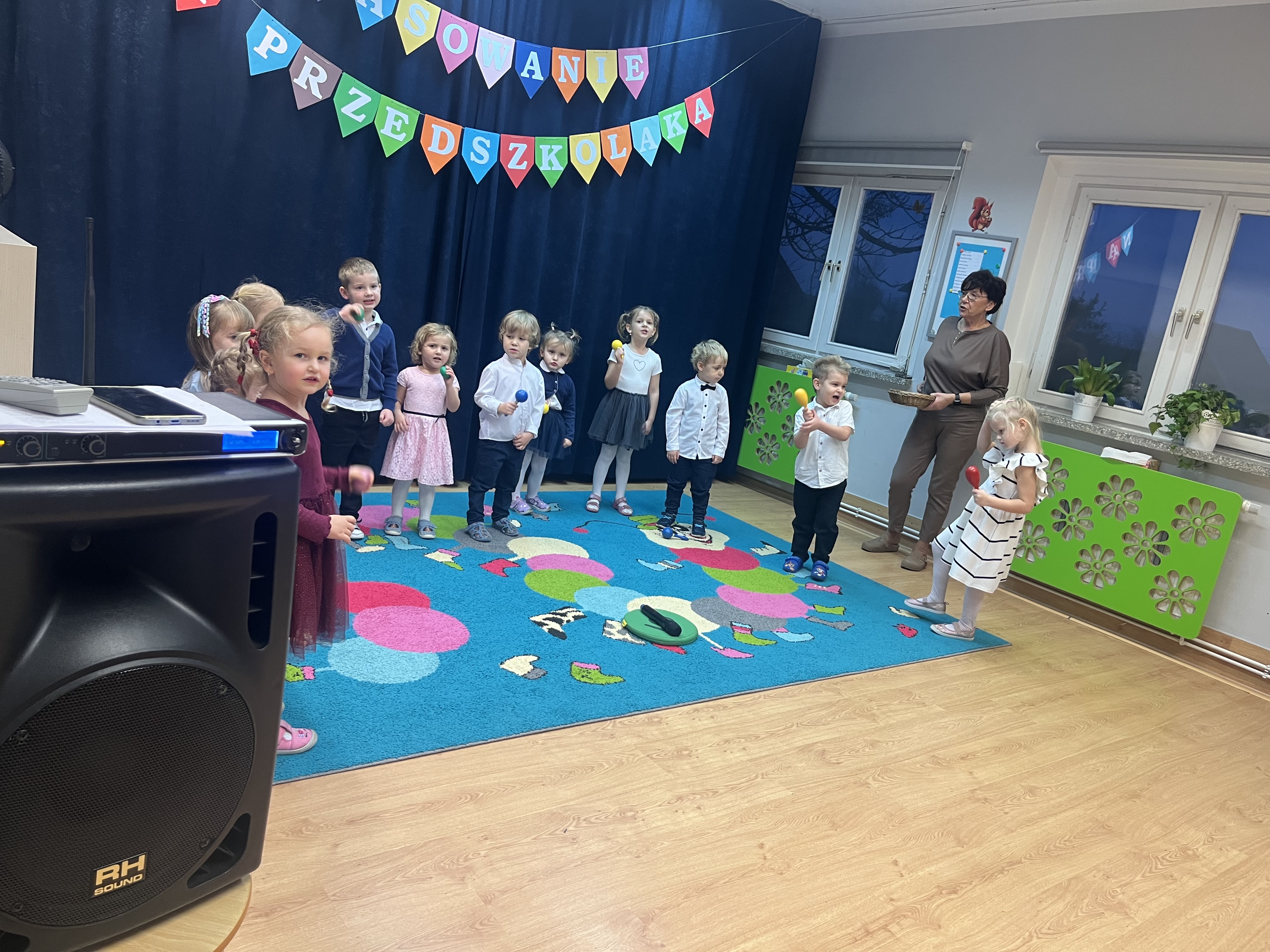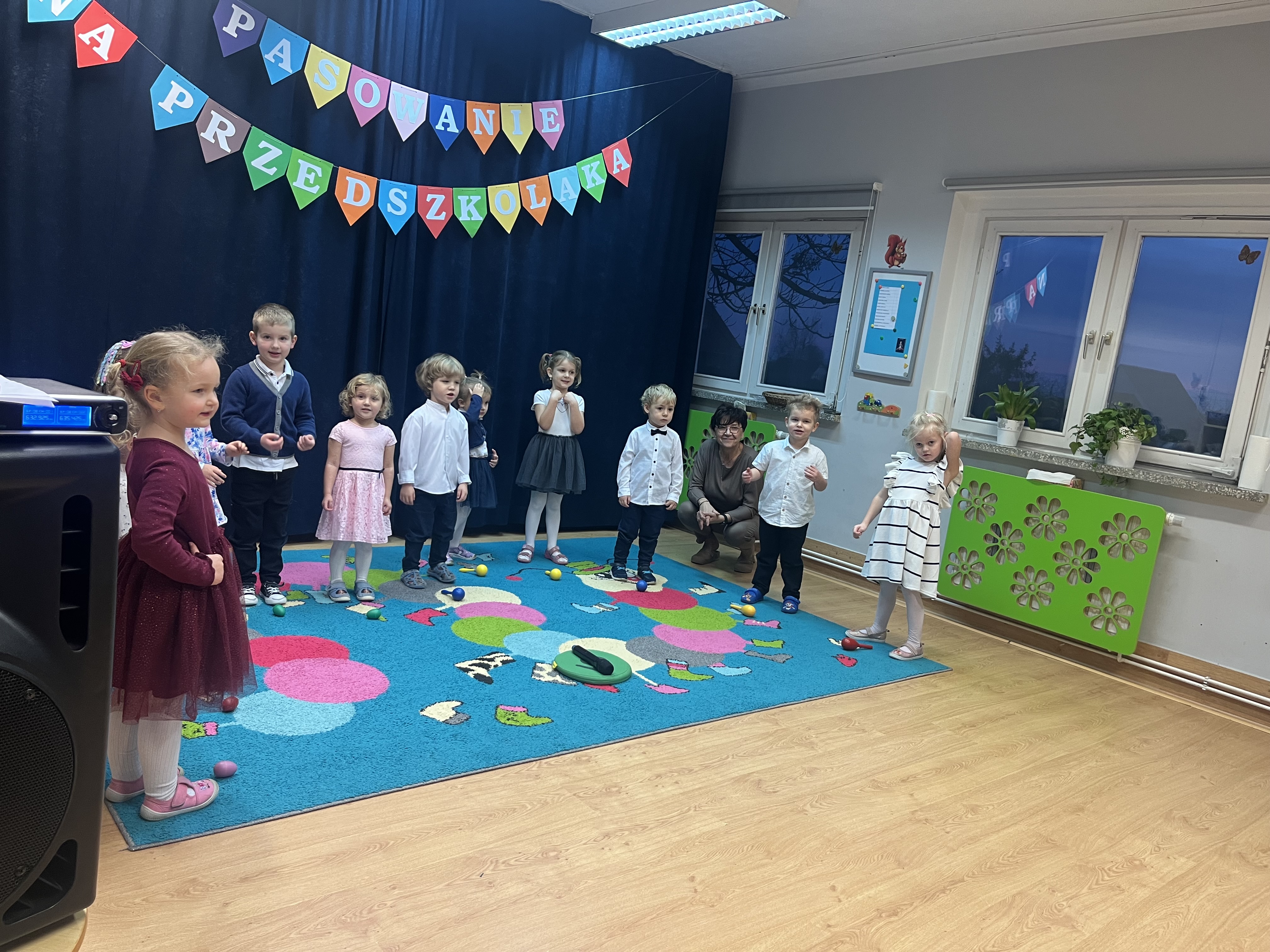 Całe wydarzenie rozpoczęło się od powitania wszystkich zebranych przez dyrekcję przedszkola. Następnie dzieci zaprezentowały przygotowany specjalnie na tę okazję program artystyczny. Mali artyści recytowali wierszyki, śpiewali piosenki oraz tańczyli, co spotkało się z gromkimi brawami zgromadzonych gości.